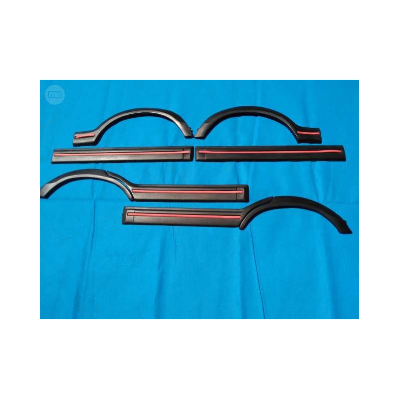 Juego de aletines y molduras para Peugeot 205 GTI, fabricados en fibra negra con acabado de alta calidad.